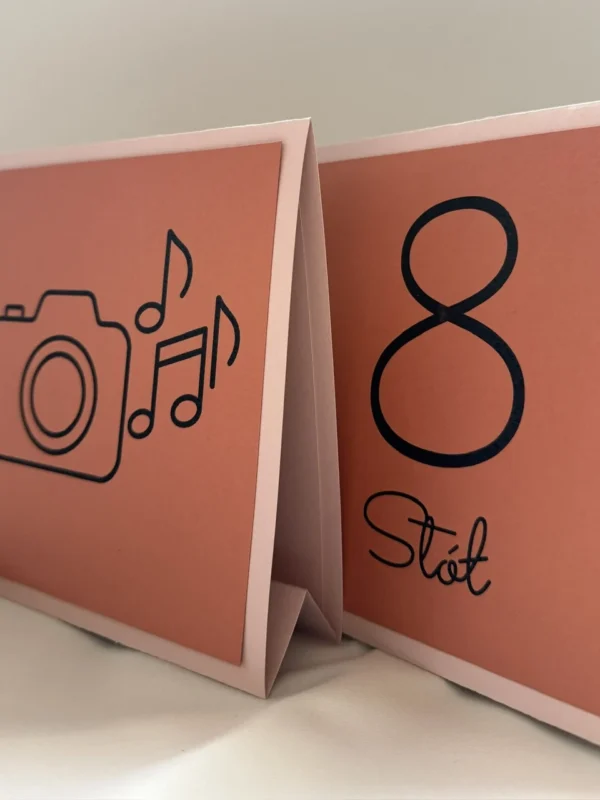 Nowoczesne numery na stoły weselne w modnej kolorystyce połączenia różu i ciepłego pomarańczu. Wykonane w formacie 16x16 cm, sklejone na stabilnej podstawie, dzięki czemu są samostojące i nie wymagają dodatkowych stojaków. Projekt łączy prostotę z elegancją – geometryczna forma i kontrastowe kolory sprawiają, że numerki są zarówno praktyczne, jak i dekoracyjne. Idealnie komponują się z nowoczesnymi aranżacjami w stylu colourful, boho chic lub modern wedding. Specyfikacja – format: 16 × 16 cm– samostojące – połączenie kolorów: róż + pomarańcz– papier: sztywny, wysokiej jakości 250 g– możliwość dopasowania kolorystyki do papeterii ślubnej