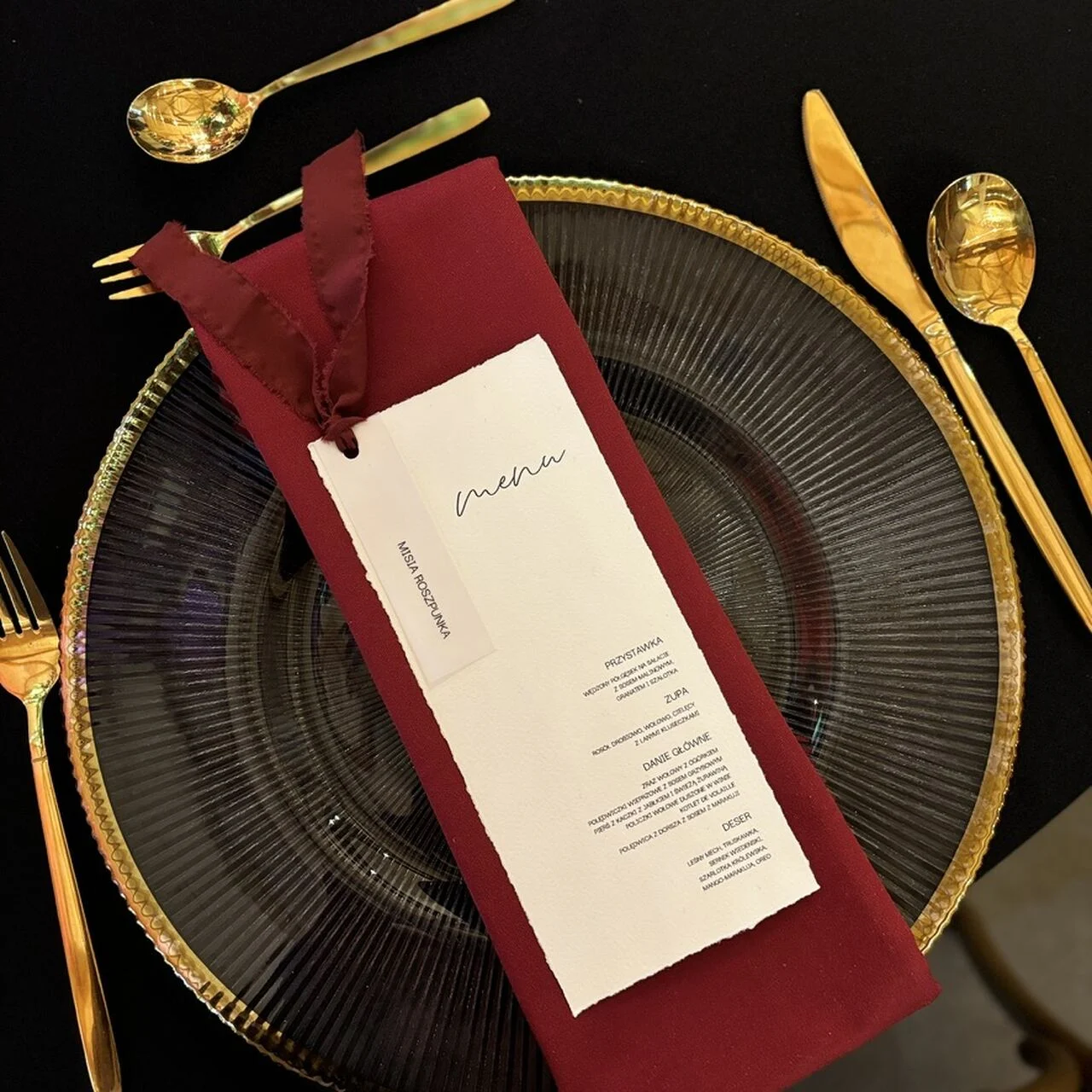 To menu idealnie komponuje się z przyjęciami w stylu romantycznym, boho lub klasycznym. Każdy detal – od faktury papieru, przez typografię, po kolor wstążki – można dopasować indywidualnie, tworząc projekt idealnie pasujący do motywu przewodniego ślubu i pozostałej papeterii.