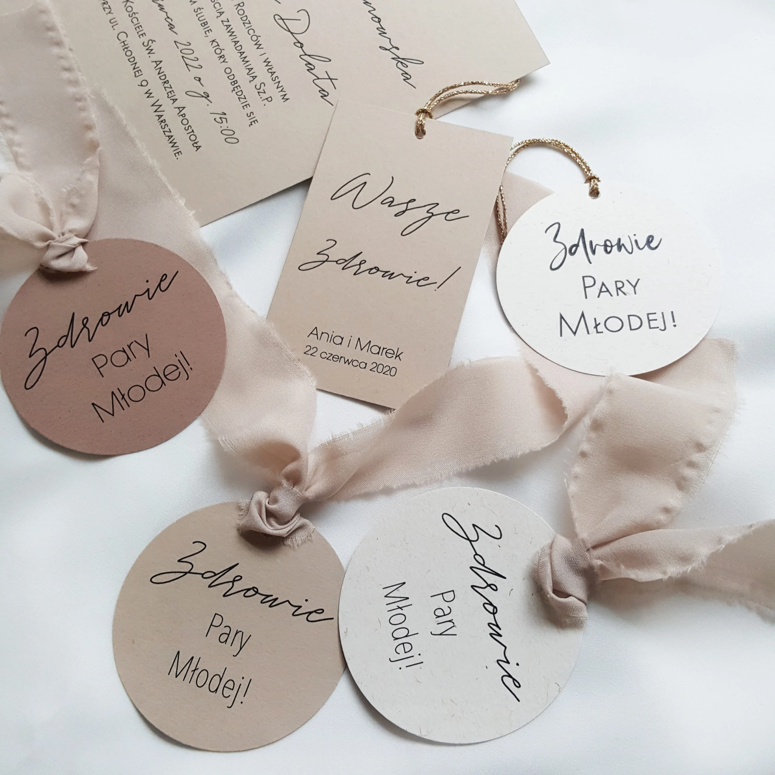Zawieszki nie tylko dekorują zwykłe butelki z etykietą, ale też niosą za sobą przesłanie, które umieszczane jest z przodu lub na odwrocie zawieszki. Tym przesłaniem może być zabawny wierszyk, który rozbawi gości lub podziękowanie gościom za ich przybycie. To detal, którego nie może zabraknąć na żadnym weselu. Zawieszki na alkohol dopełnią całość aranżacji weselnych stołów.